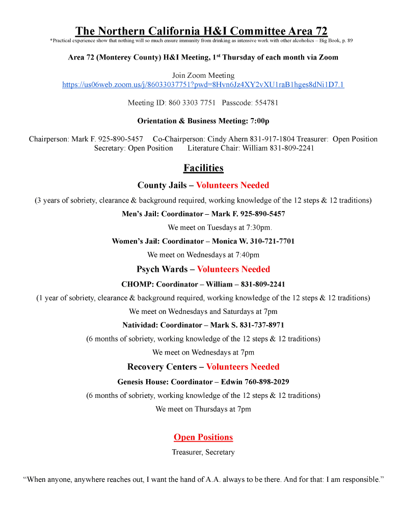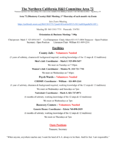Our Monterey Bay Area Intergroup is currently seeking trusted servants to help carry the message and support the work of Central Office.